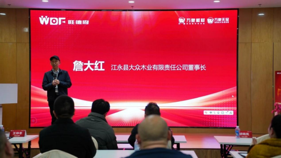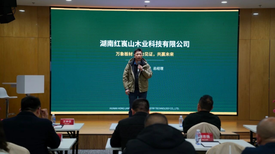 江永县大众木业有限责任公司董事长詹大红、湖南红崀山木业科技有限公司总经理徐艳明先后发言,围绕年度产品迭代、品质管控、环保标准、价格体系、终端服务等核心维度,作出重磅赋能承诺,以坚定信心与实际行动,与品牌同心共进、共赢市场。