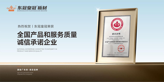 荣誉加冕,诚信致远。此次斩获全国质量诚信殊荣,既是认可更是鞭策。未来,东冠皇冠板材将继续以匠心铸品质、以诚信立品牌,深耕高端定制板材领域,持续迭代产品技术、升级全周期服务,严守环保安全底线,以优质产品与贴心服务回馈市场,传递诚信力量,助力行业高质量发展,守护万千家庭的健康高端家居生活。