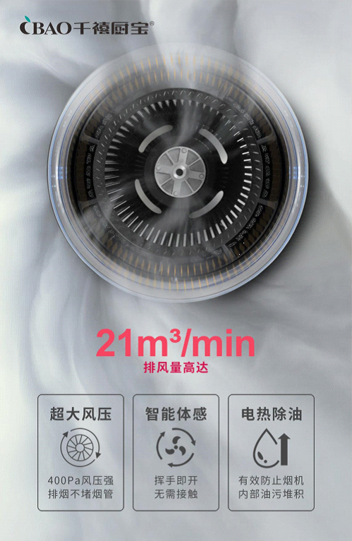 (1)烟机采用塑封电机,具有耐潮湿、耐腐蚀、寿命长、噪音低、振动小等优势;