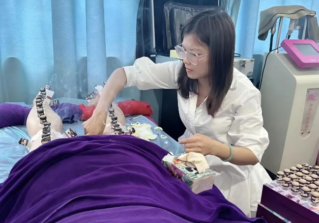 毫无健康行业经验的她,在俏妃总部标准化的服务体系、专业的技术培训与保姆级带教指导下,快速完成身份转型。罗根将财务工作中的严谨细致融入门店经营,从客户服务、技术实操到社群运营、成本管控,每一个环节都精益求精,再结合俏妃总部的引流支持,让门店迅速积累起高粘性的稳定客群。