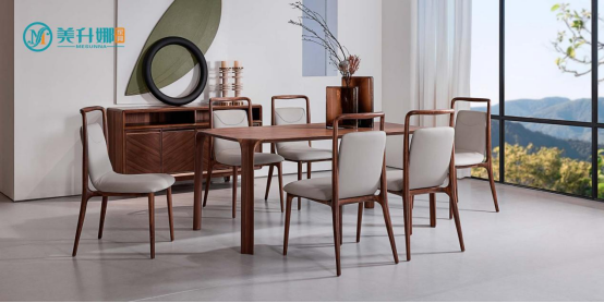 ·甄选良材,奠定温暖底蕴:美升娜甄选色泽深邃、纹理如画的北美黑胡桃木。其经手工精细打磨后,触感温润如玉,天然的木纹为家居空间注入一份经年沉淀的从容与雅致,成为团圆时光最温暖的底色。