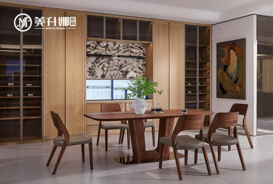 ·融汇设计,诠释现代东方美学:在设计上,美升娜将东方意境巧妙融入现代生活。无论是餐桌边缘点缀的云纹浮雕,还是柜体采用的隐形拉手设计,都在简约造型中蕴含深远意境,实现了传统与现代的和谐共生,让团圆的空间更显纯净与完整。