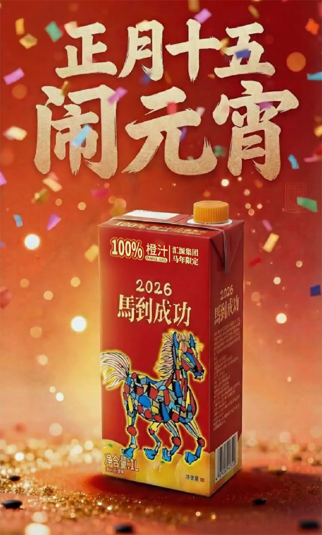 元宵佳节,月满人团圆。当一碗碗热气腾腾的元宵端上餐桌,一盏盏花灯点亮街头,马年春节也在这份甜蜜中圆满收官。回望整个春节,有一种“年味”格外特别,它不仅是年夜饭里的美味果汁,还是社交媒体上万人共创的艺术画卷,是消费者笔下的骏马奔腾,是汇源集团“咱家果源”马到成功马年限定款带给国人的温暖陪伴。