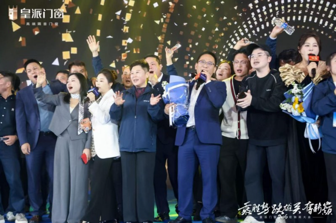 真正的沸腾,随春锋夺旗行动的号角正式打响而点燃。皇派门窗各战区率队登台,旌旗猎猎,誓言铮铮。“乘胜势!跃雄关!夺新巅!”的呐喊声如滚滚春雷,响彻会场。全体宣誓必胜的如磐决心,字字千钧如山呼海啸,为大会画上浓墨重彩的一笔,成为皇派门窗2026年征战市场的最强宣战书!