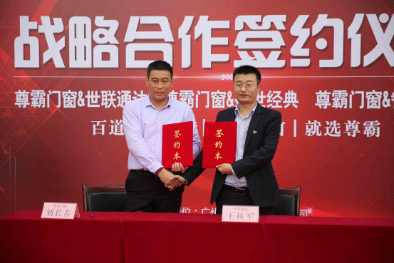 在会议开始前,众人齐聚尊霸门窗的企业总部广场,共同见证一场凝聚品牌力量的盛大签约仪式!万众瞩目下,广州市尊霸门窗有限公司与第三方机构世联通达、盛世经典、智诚天下三家企业进行了隆重的战略合作签约仪式,并在媒体镜头的记录下,将这重要的时刻定格为永恒的记忆。一时间,现场响起了雷鸣般的掌声,在场嘉宾都对尊霸门窗的未来抱有了莫大的期待,相信在与三家精英企业的友好合作下,尊霸门窗必定会焕发出新的生机与活力!