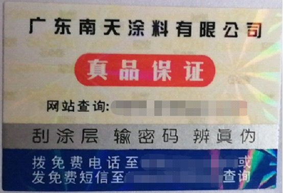 在鉴别假冒伪劣产品上,南天涂料的每桶产品都有对应的防伪标签,桶身有二维码扫描确认,其次可以进入南天涂料官网在线查询或是拨打南天涂料公司服务电话查询。