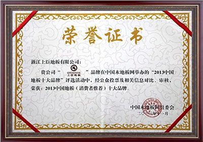 每年,由中国木地板网主办评选的"中国地板十大品牌",都要通过层层的严格甄选,从众多地板品牌中选出最具雄厚实力与优质市场口碑、美誉度的品牌。而上臣地板一直以来都稳居领先地位,凭借美学设计、环保性能、A家服务等综合品牌优势,连续六年荣膺“中国地板十大品牌”荣誉称号!强大的品牌价值使得上臣地板成为亿万家庭的首选,开创了地板十大品牌畅销时代!