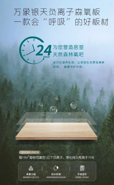 随着消费者对品质生活的倾心,对自然环保家居的向往,万象银天从“芯”出发,携秋季新品:万象银天负离子森氧板,震撼上市。为打造全新都市森林家,用天然品质焕活家居健康生命力。