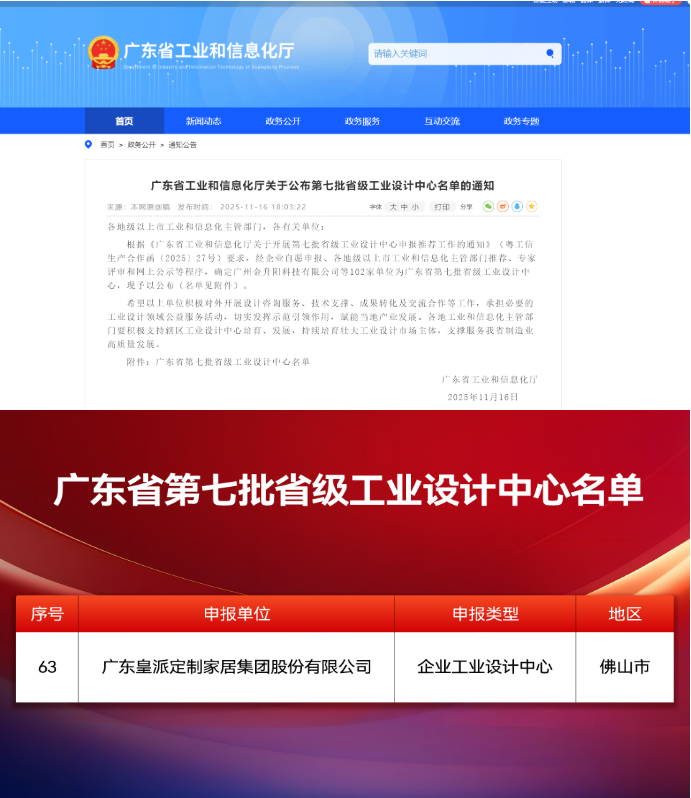 近日,广东省工业和信息化厅公布了《第七批省级工业设计中心认定名单》,共有12家佛山市企业入选,其中皇派门窗凭借先进的研发创新平台、深厚的专利实力沉淀、专业的工业设计体系、出众的设计应用与竞争优势等全方位的标杆水平,作为佛山市门窗行业代表,成功上榜“广东省工业设计中心”。