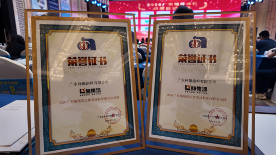 凭借深厚的品牌积淀、过硬的产品品质以及贴心的服务理念,林德漆在众多企业中脱颖而出,一举斩获两项重磅殊荣——“2026广东墙面高定仿石涂料年度价值品牌”与“2026广东墙面高定艺术涂料年度价值品牌”。这两份荣誉,不仅是行业对林德漆在高定涂料领域深耕细作的高度认可,更是对其“品质为王,服务至上”核心理念的最佳佐证,彰显了林德漆在广东涂料行业的坚实地位。