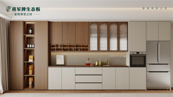 好板材,更能适配多元家居需求。将军牌生态板板面平整光洁,纹理自然流畅,花色丰富多样,涵盖温润木纹、简约纯色等多种风格,可轻松适配现代、轻奢、新中式、极简等各类家装设计,无论是全屋定制柜体、护墙板,还是背景墙、书柜,都能完美融入空间,兼顾颜值与实用性,让家居格调更显高级。