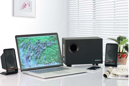 第一款:雅兰仕(EARISE)AL-933 电脑有源音箱多媒体2.1低音炮音响,经典造型,全木质低音炮,时尚造型卫星箱。内置有源功率放大器,超重低音。