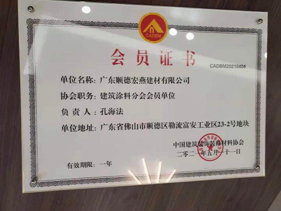 作为扎根于粤港澳大湾区14年的艺术涂料制造商和涂装施工服务商,宏燕艺术水漆凭借在涂装领域中的企业规模、经济效益、品牌影响力等多方面综合优势,荣获由中国建筑装饰装修材料协会颁发的“建筑涂料分会会员单位”殊荣。
